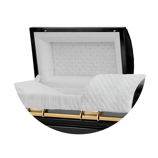 Titan Casket offers a variety of luxurious yet affordable caskets. These caskets are crafted with high-quality materials and feature a range of customizable elements such as intricate inlay work, elegant embroidery, sophisticated embossing, custom head panels, and various sizes. Despite their luxurious appearance, Titan Casket's luxury caskets are priced much more affordably than those found at funeral homes.