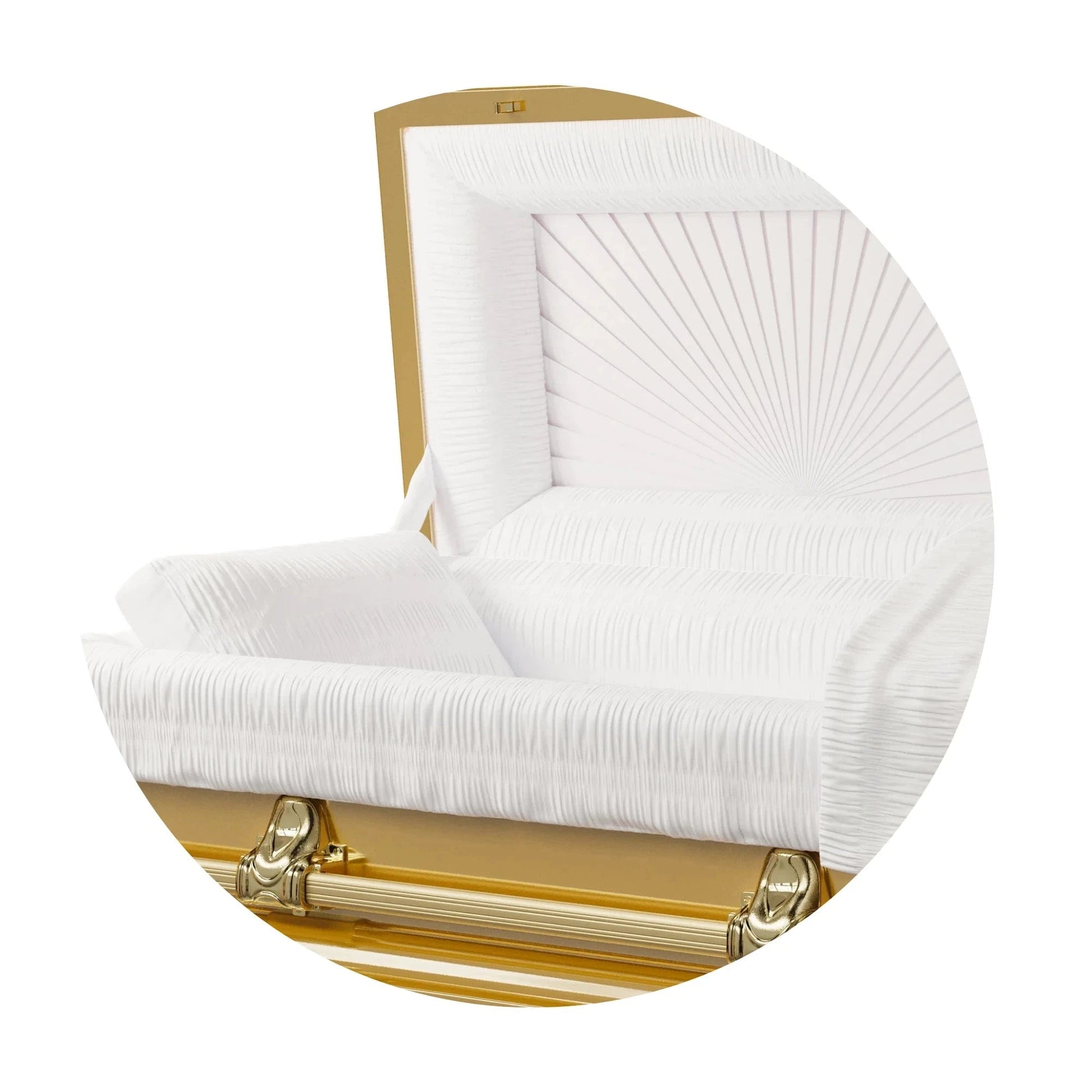 The customer service department was easy to work with, and it was delivered on the requested date. The quality and color of the casket and the inside fabric were exceptional. The casket and fabric were light blue, and the handles were bright chrome. the quality of the steel and handles were top of the line. No disappointments. I would definitely order from Titan again. Thank you.
