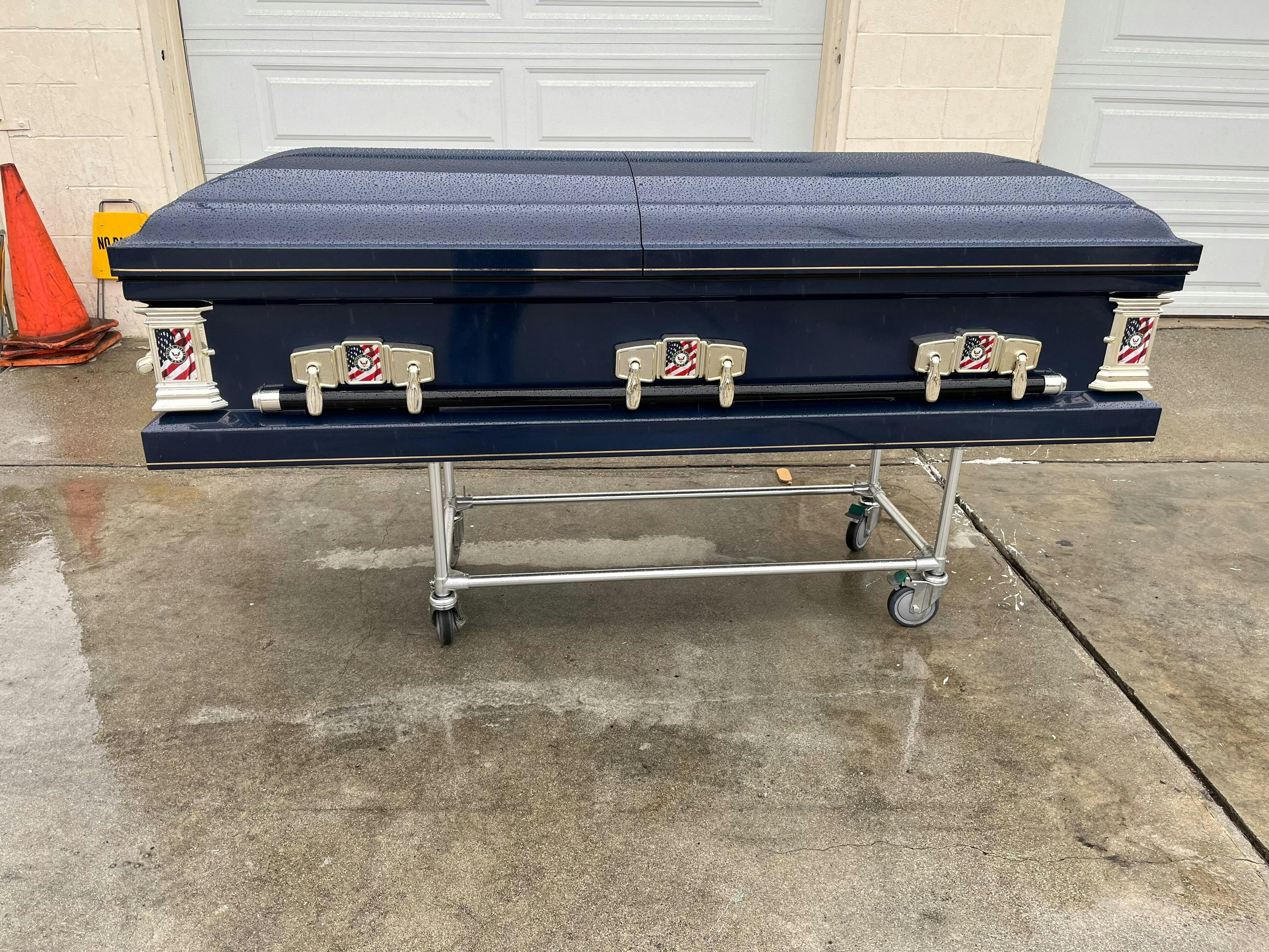 This casket features a full rubber gasket and locking mechanism.
