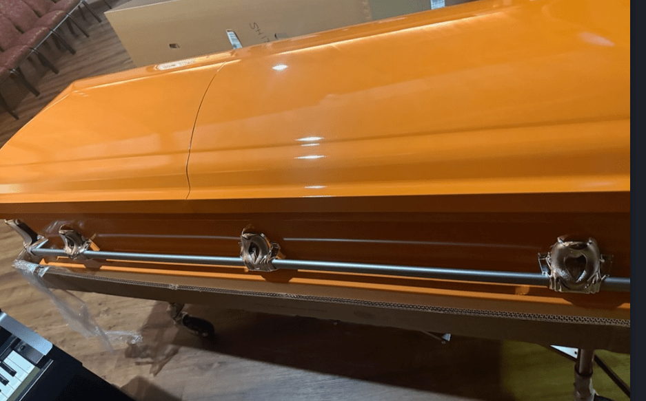 We paint each steel casket with a shiny high gloss finish that creates a brilliant sheen.