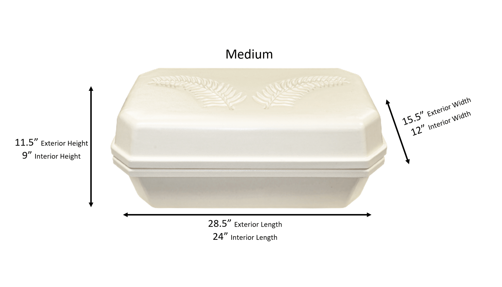 | MEDIUM | 24"L x 12"W x 9"H | 28.5"L x 15.5"W x 11.5"H |