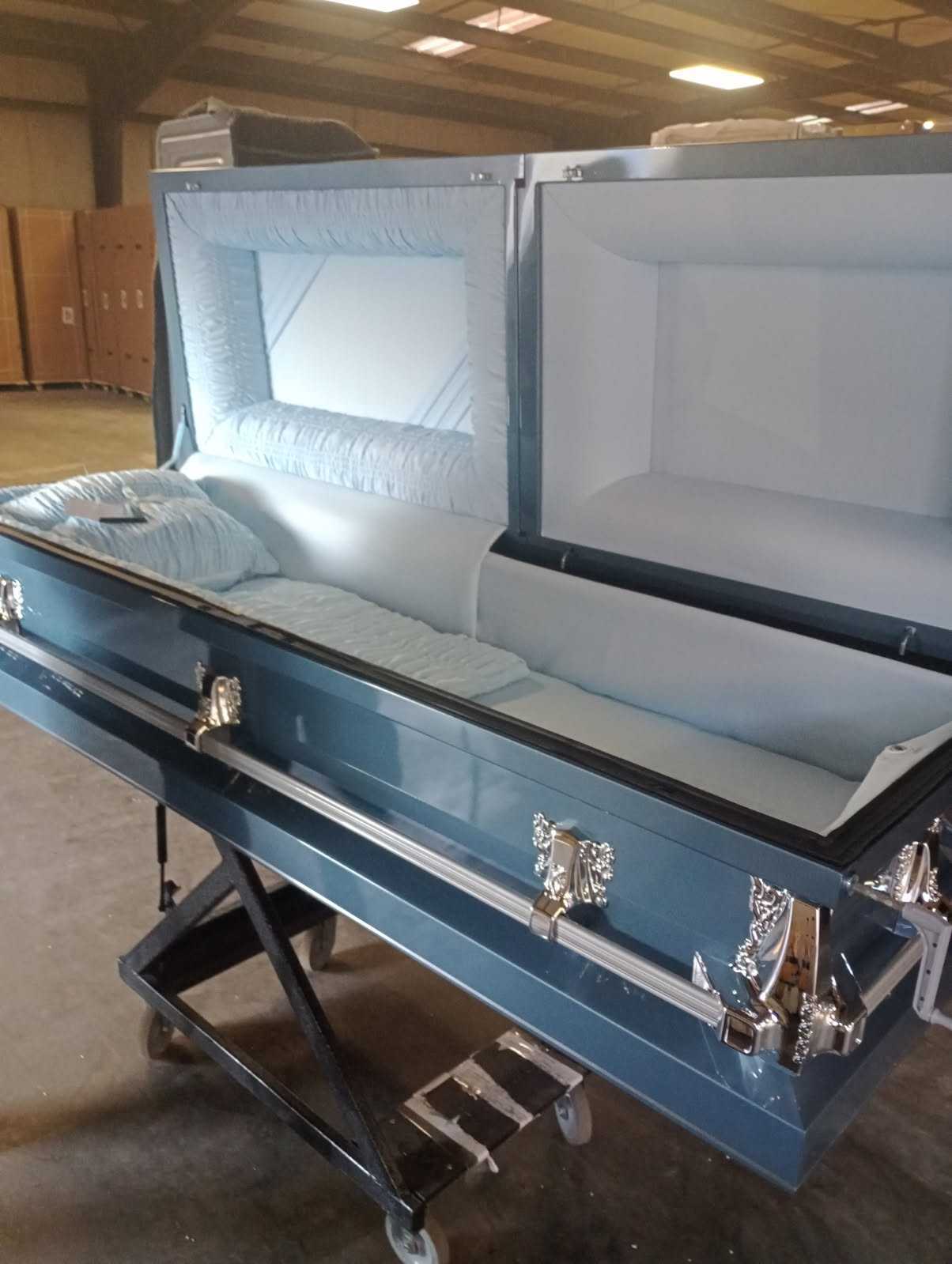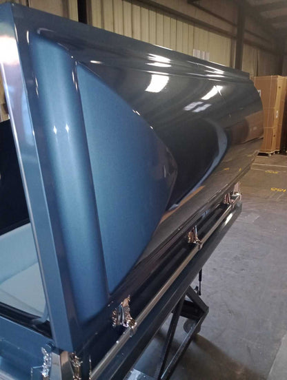 We paint each steel casket with a shiny high gloss finish that creates a brilliant sheen.