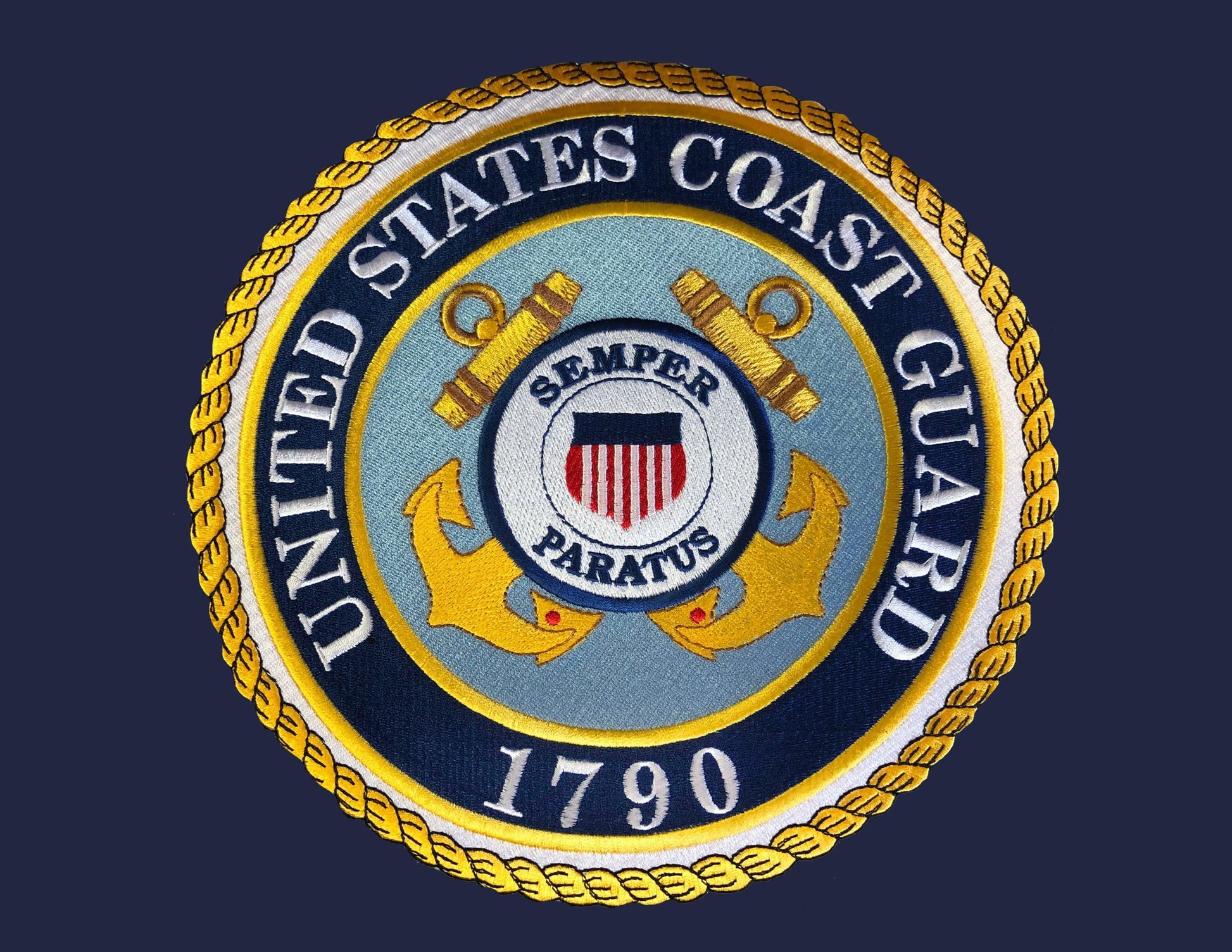 The interior head panel proudly features an embroidered seal specific to the represented branch of service.