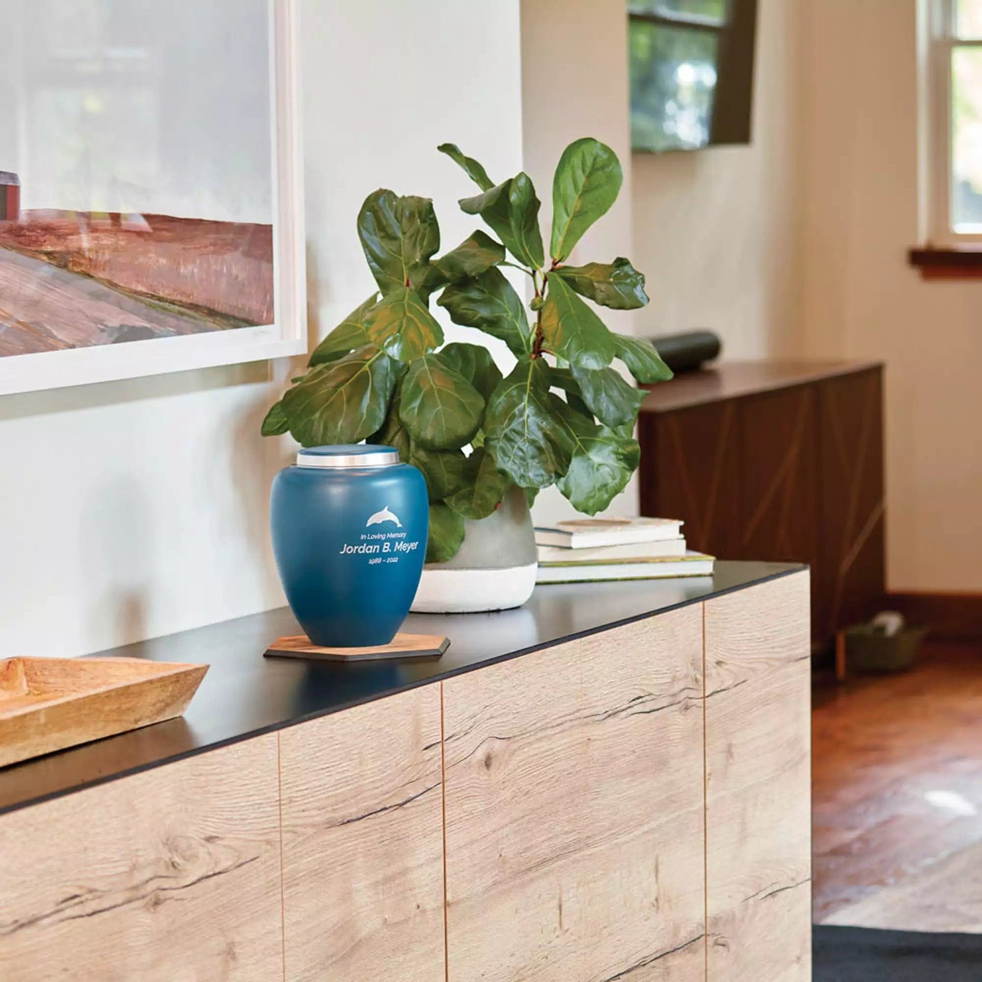 The Emerson collection is a testament to modern design, carefully crafted to complement a wide range of contemporary home decor styles, all while remaining affordable. It boasts a harmonious blend of form and function, making it an ideal choice for those who appreciate both aesthetics and practicality. What sets the Emerson collection apart are its matte finishes, available in four exquisite jewel-tone colors: amethyst, emerald, granite, and teal sapphire. These rich, deep hues are more than just colors; they are a canvas upon which you can pay tribute to your loved one. Each color carries its own unique emotional resonance, allowing you to select the one that resonates most with the personality and spirit of the person you're remembering