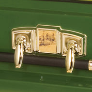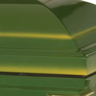A glossy gradient transitions through many shades of green to add visual texture to this casket's paint