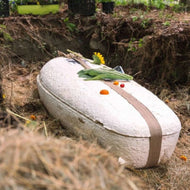 Lined with a soft, 100% natural moss bed and pillow for a peaceful and earth-connected farewell.