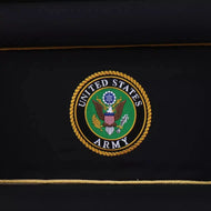 The interior head panel proudly features an embroidered seal specific to the represented branch of service.