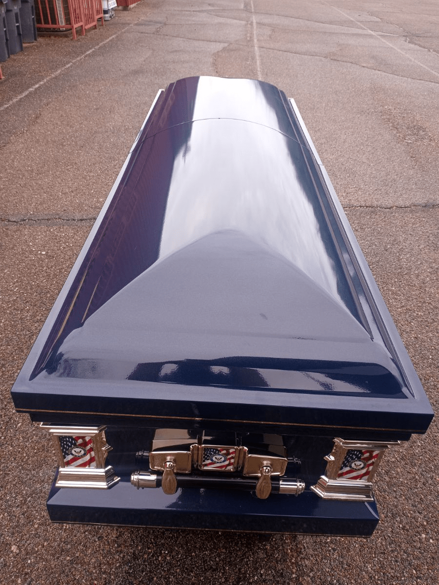 We paint each steel casket with a shiny high gloss finish that creates a brilliant sheen.