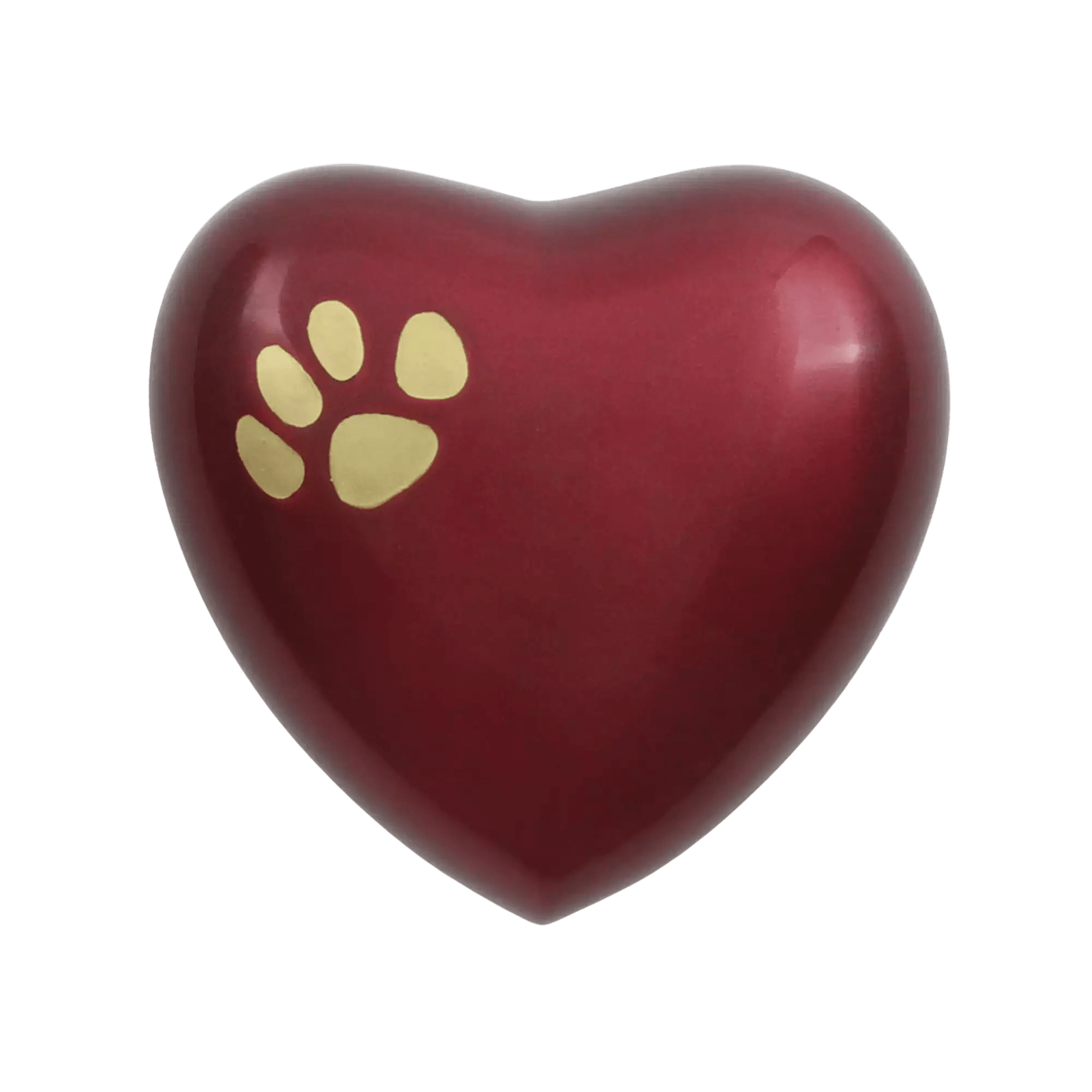 • PREMIUM QUALITY. The Odyssey Paw Print Crimson Heart Pet Urn is beautifully crafted with love in solid brass and a Golden Paw Print is embossed on the heart.