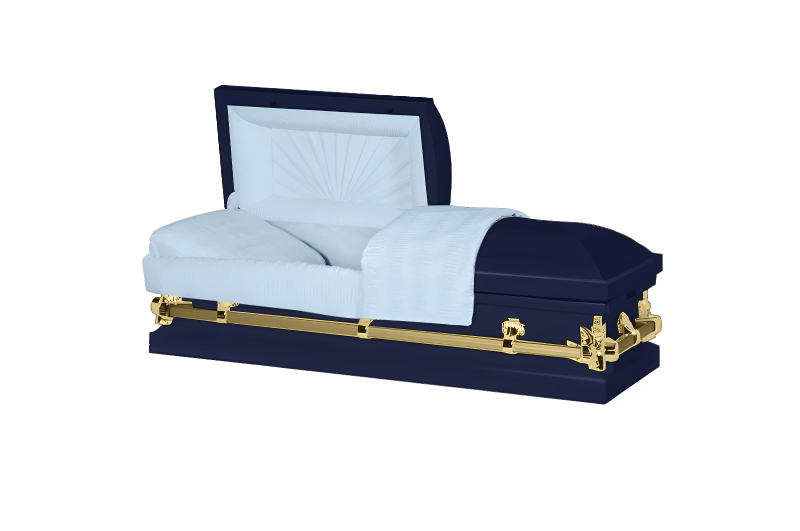 When you're ready to say goodbye to your beloved pet, we understand that you want a casket that is as beautiful and luxurious as the animal that it holds.Β We know you love your pet, and we want you to be able to show them how much they mean to you. That's why we've created theΒ Dark Blue & Gold Pet Casket withΒ light blue interior as the perfect way to honor your furry friend's memory.
