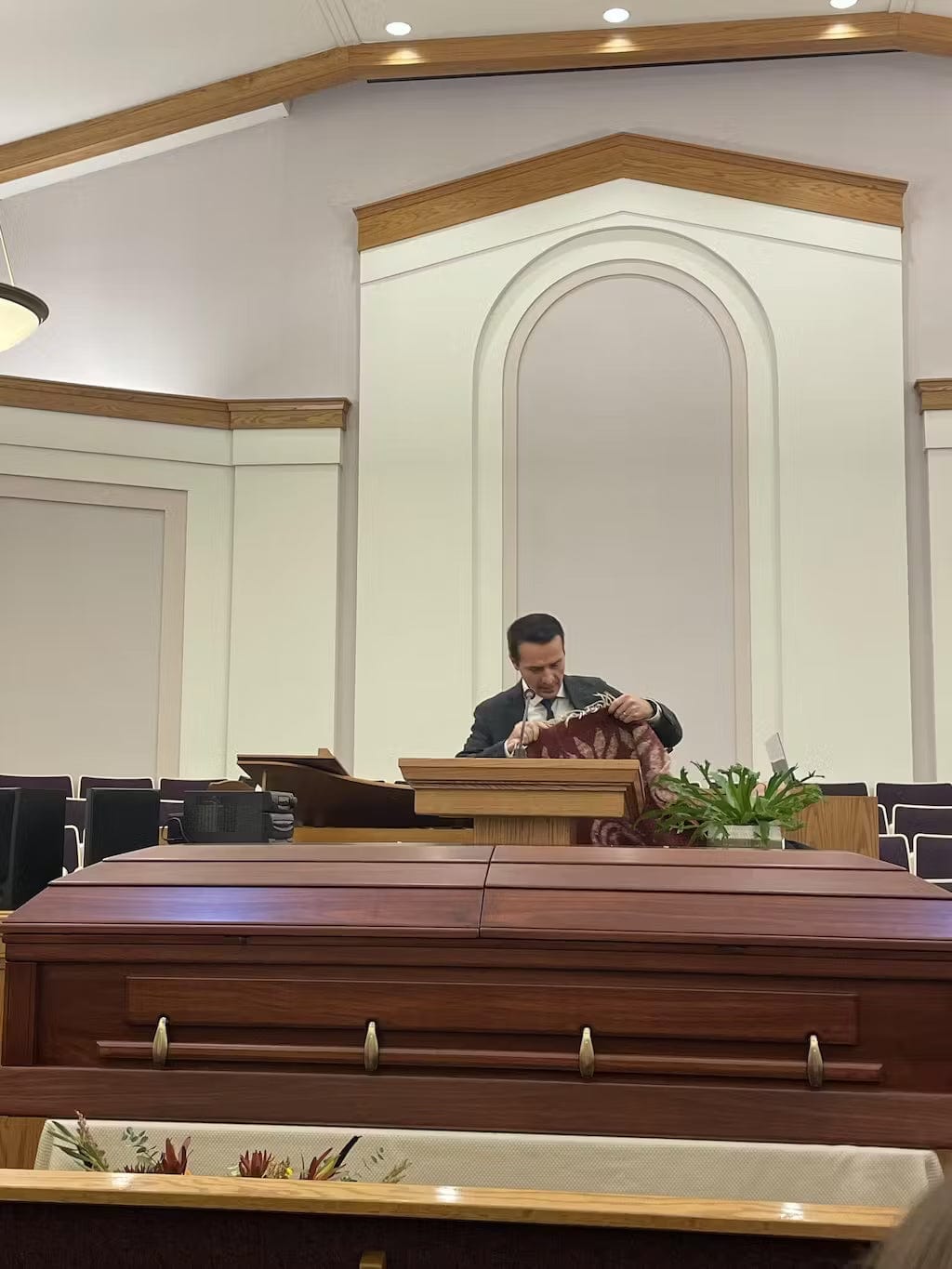 We stain the casket in a beautiful cherry hue for a sophisticated look