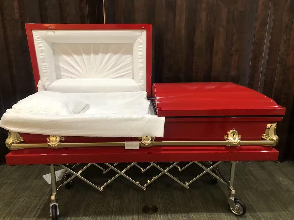 The customer service department was easy to work with, and it was delivered on the requested date. The quality and color of the casket and the inside fabric were exceptional. The casket and fabric were light blue, and the handles were bright chrome. the quality of the steel and handles were top of the line. No disappointments. I would definitely order from Titan again. Thank you.