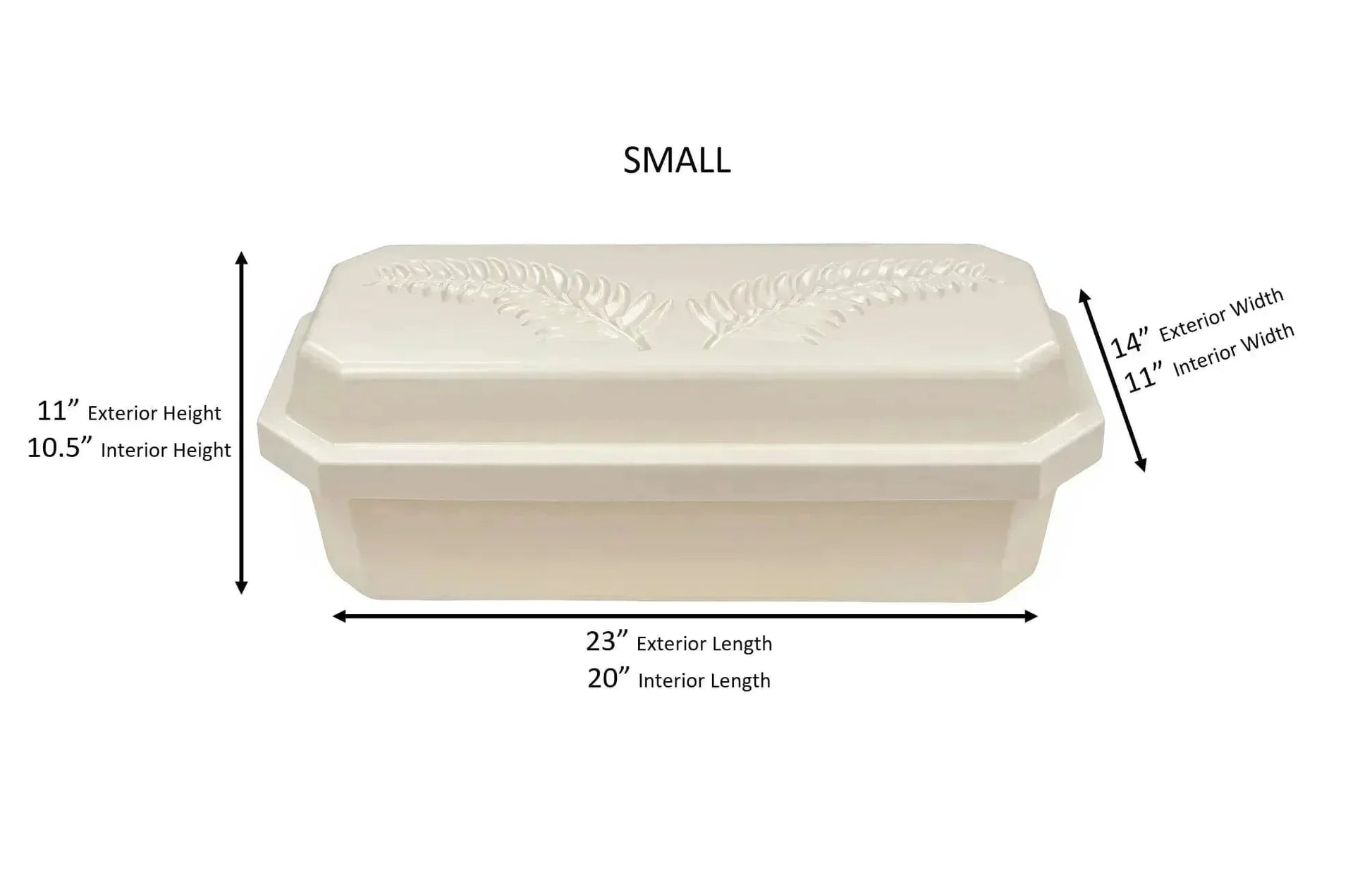 Our Pet Casket is specially designed to accommodate your precious and beloved pet. The beautiful high quality polystyrene casket has a full lid and engraving of fern leaves. This mini casket comes in a variety of sizes ranging from a small cat to a large dog!