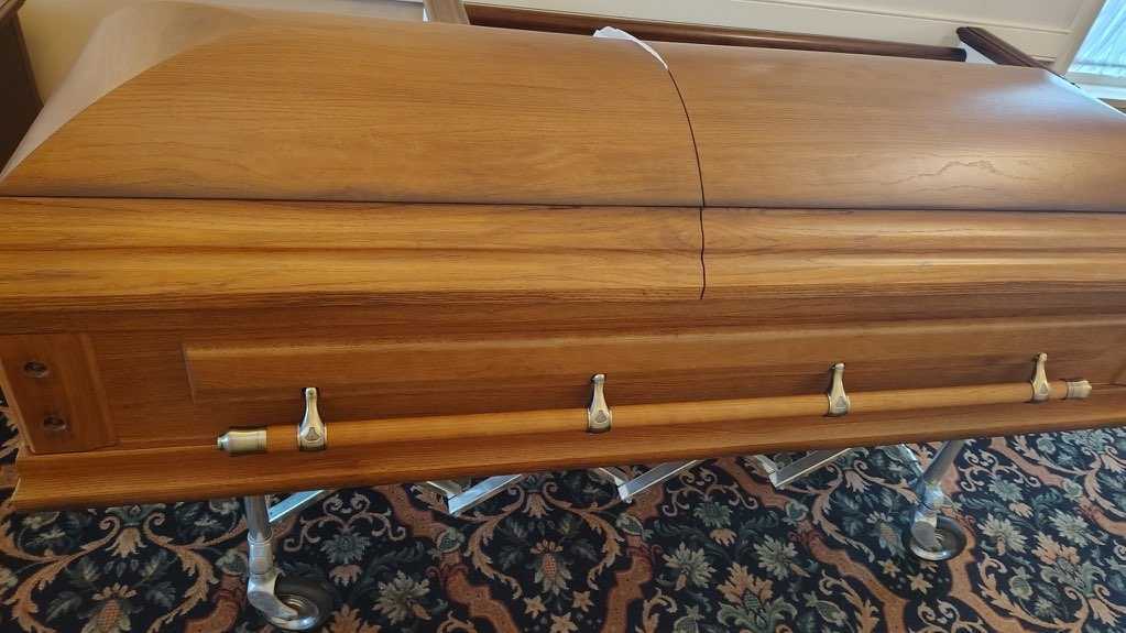 Built of solid oak wood, this casket is incredibly strong and beautiful
