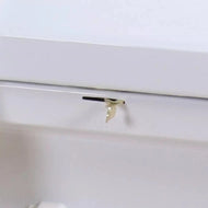 A simple locking mechanism slightly protrudes from each lid of the casket