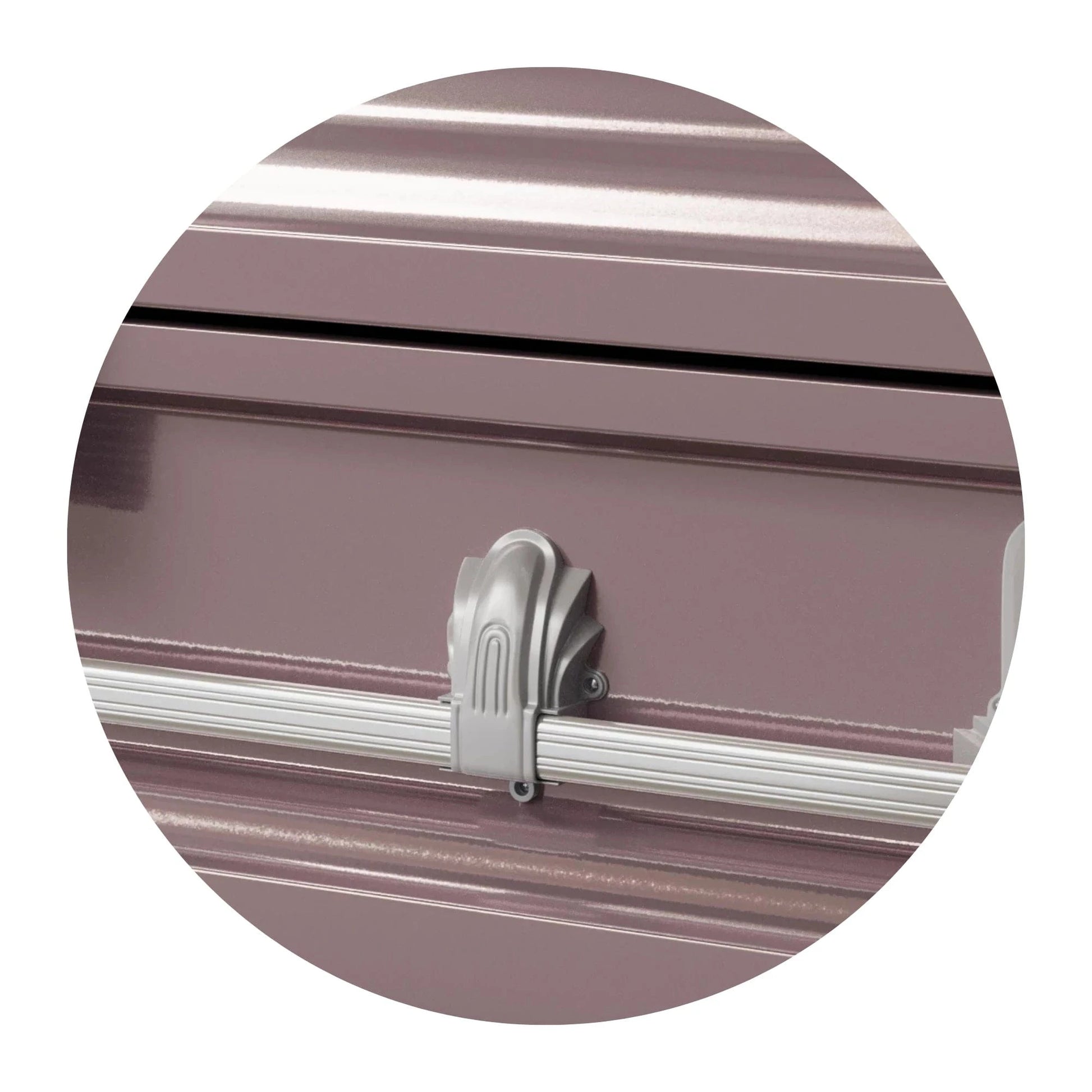 A simple locking mechanism slightly protrudes from each lid of the casket