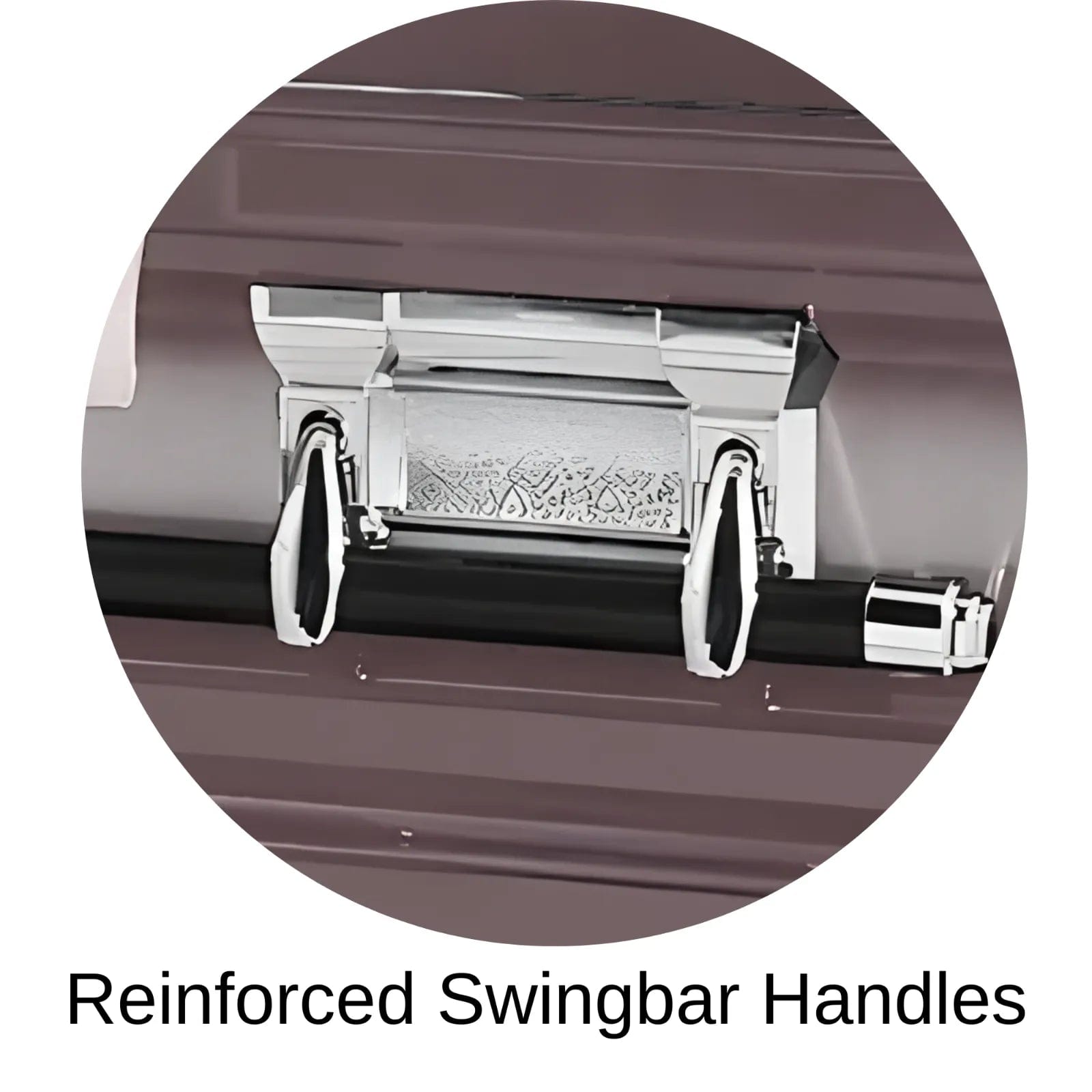 The reinforced swingbar handles pull up and away from the casket when in use which allows for easier transport.