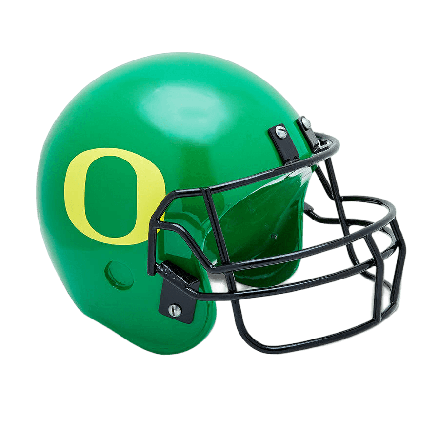 - SPORTS THEME. The University of Oregon Football Helmet Urn has the characteristic colors of the college football team