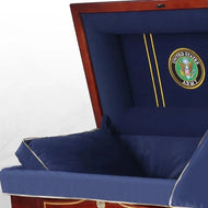 The interior head panel proudly features an embroidered seal specific to the represented branch of service.
