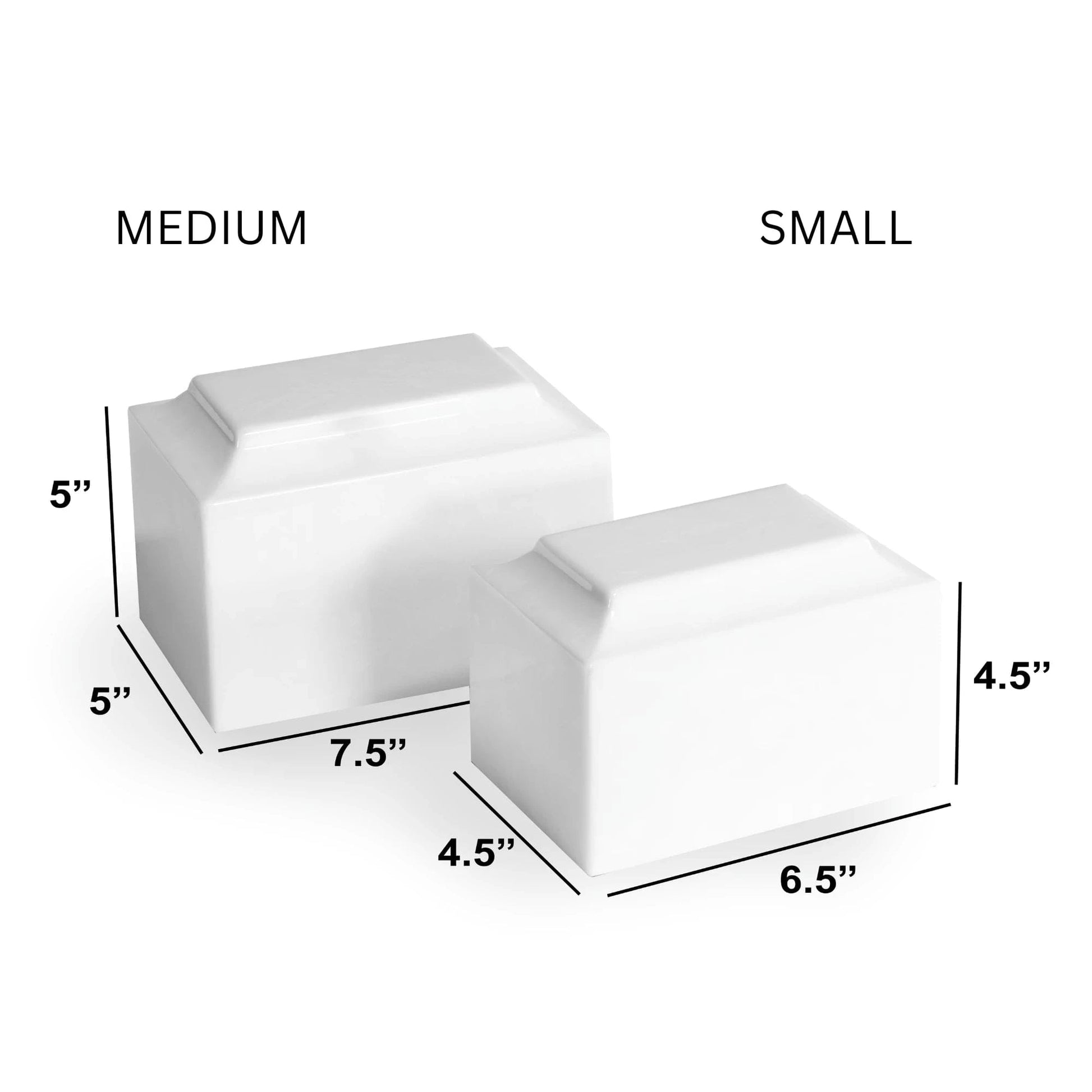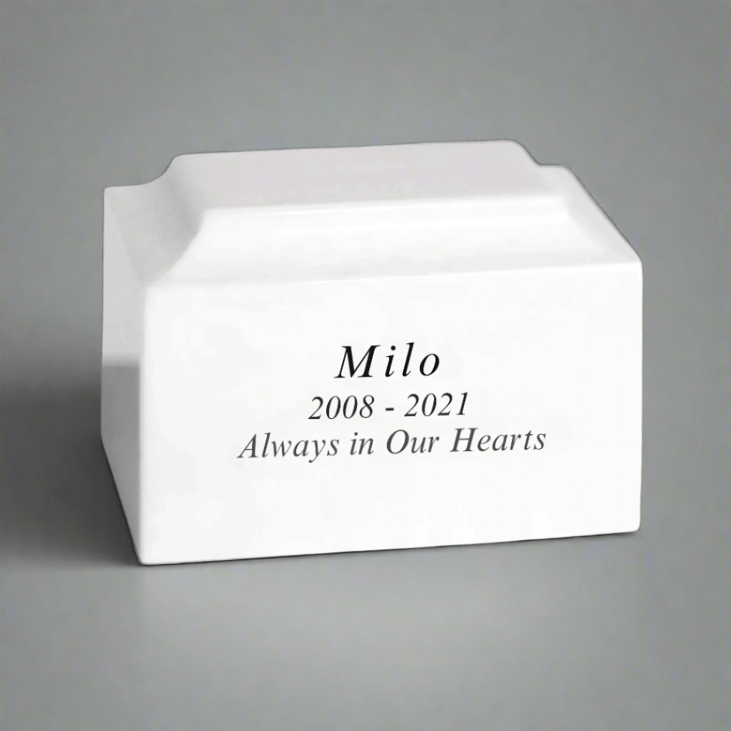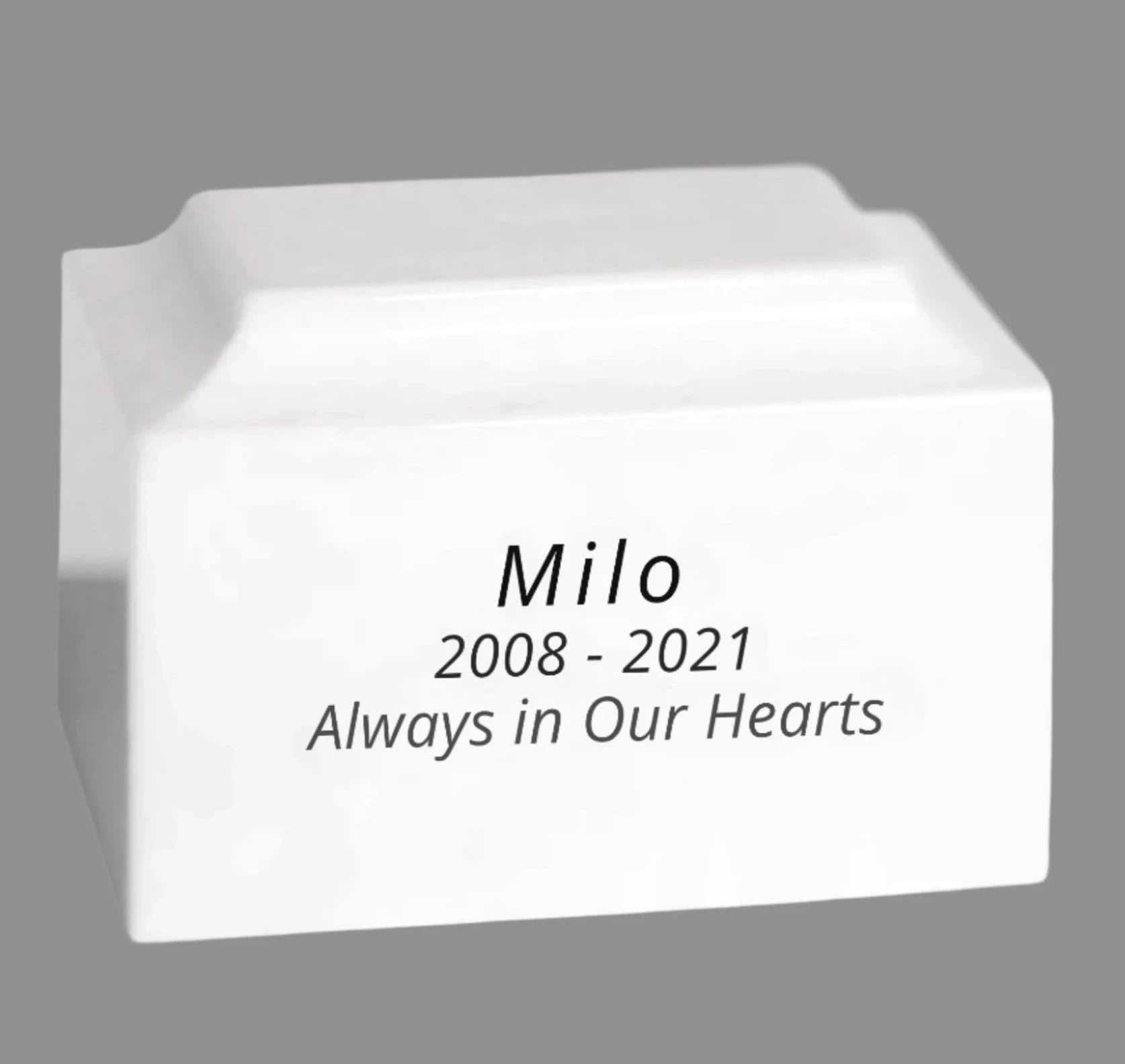 Made from a blend of marble dust, resin, and pigments, this urn captures the elegance of natural marble while ensuring exceptional durability. It can be displayed at home, placed in a columbarium, or buried without requiring an additional vault, meeting most cemetery regulations for pet burials.
