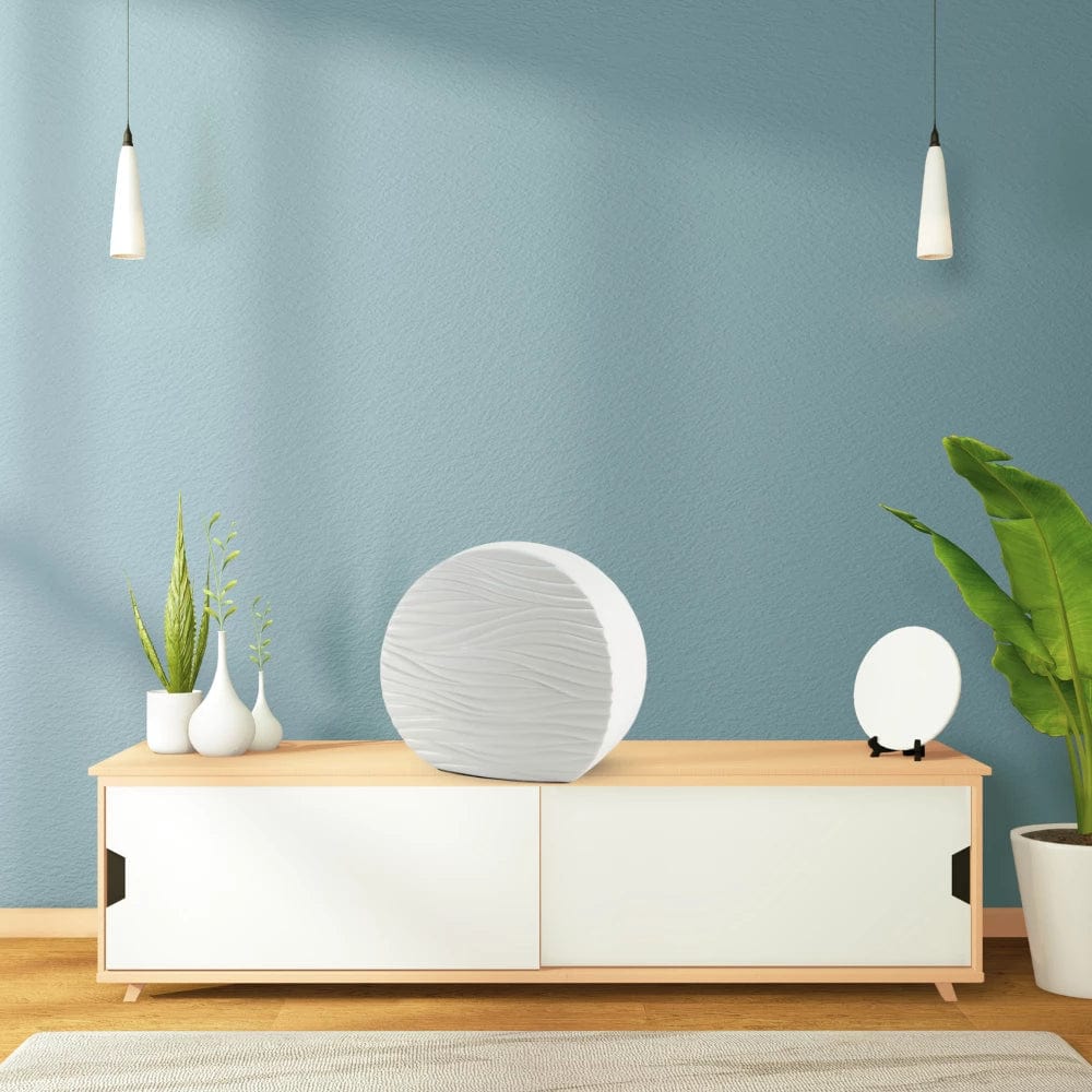 - UNIQUE DESIGN. The urn presents a unique design of soft waves with a glossy white-gradient finish.